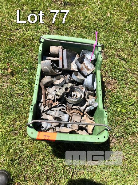 ASSORTED GALV PIPE CLAMPS, BRACKETS & FENCE CAPS, 1 x TUB