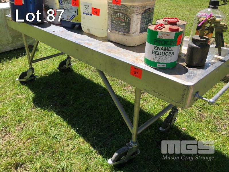 STAINLESS STEEL MORGUE TABLE, MOBILE WITH DRAIN, LOCKABLE CASTORS