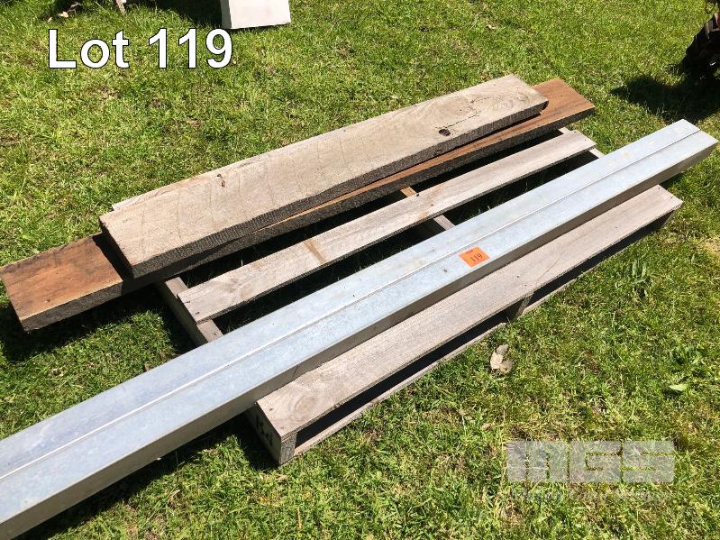 2 x LENGTHS GALV, RHS, 75mm, 2400mm (L) & 2 x HARDWOOD PLANKS, 200 x 40mm & 1800 x 2000mm