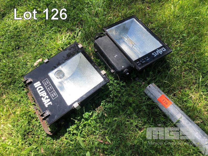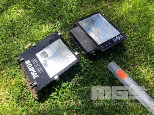 GALV YARD FLOOD LIGHT POLE, 7.5m WITH 2 x HPS WEATHERPROOF FLOOD LIGHTS