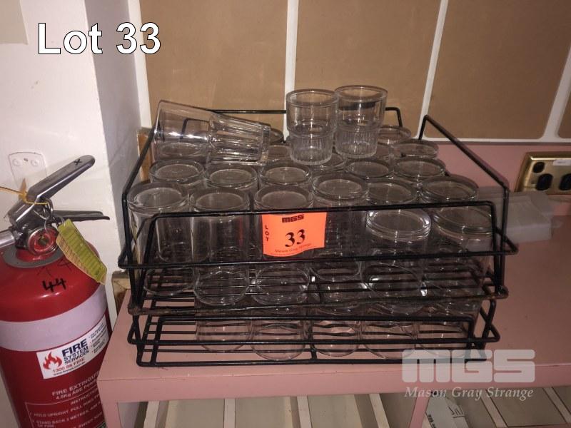 2 x GLASS TRAYS & 60 (APPROX) x GLASS TUMBLERS