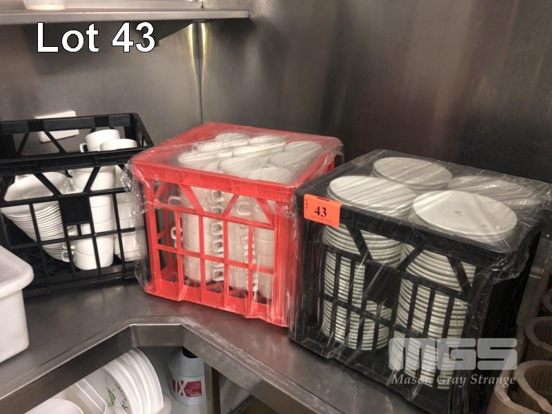 LARGE QUANTITY WHITE TEA/COFFEE CUPS & SAUCERS, APPROX 120 x SAUCERS & 80 x CUPS