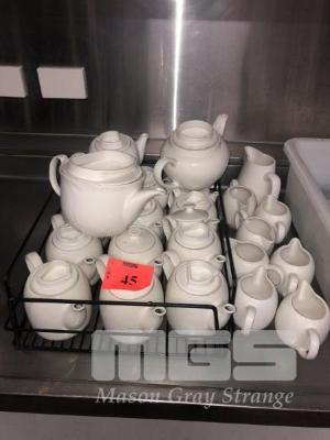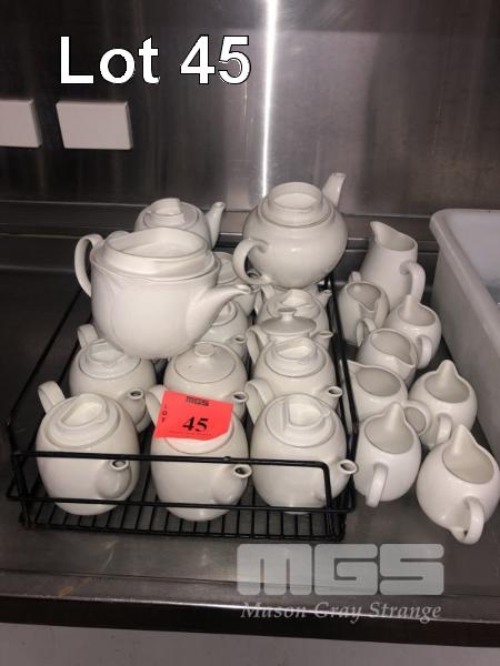 13 x WHITE SMALL TEA POTS, 2 x WHITE LARGE TEA POTS & 8 x MILK JUGS