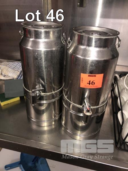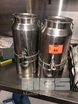 2 x STAINLESS STEEL MILK URNS, FRILICH, 5 LITRE