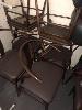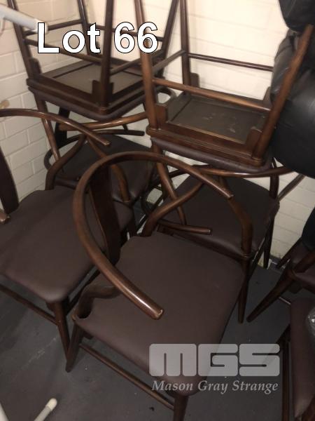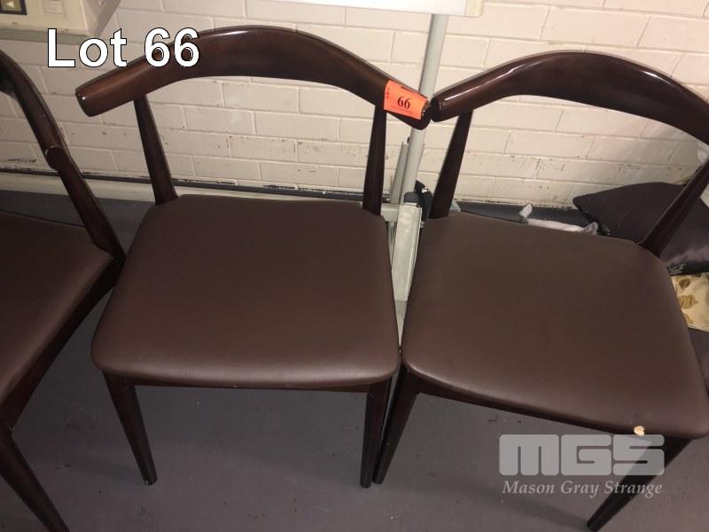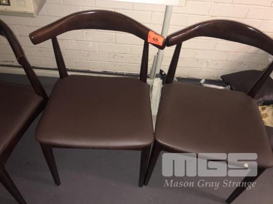 14 x TIMBER DINING ROOM CHAIRS, SWAY BACK, BROWN VINYL SEATS