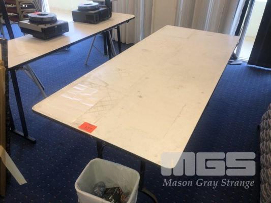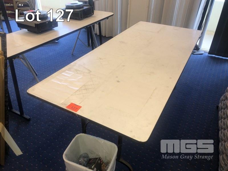 2 x TIMBER LAMINATE TRESSEL TABLES, 1800 x 750, 1800 x 500mm