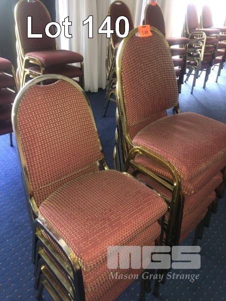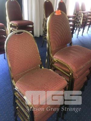10 x STEEL FRAME DINING CHAIRS, RED PATTERN CLOTH, GOLD FRAME