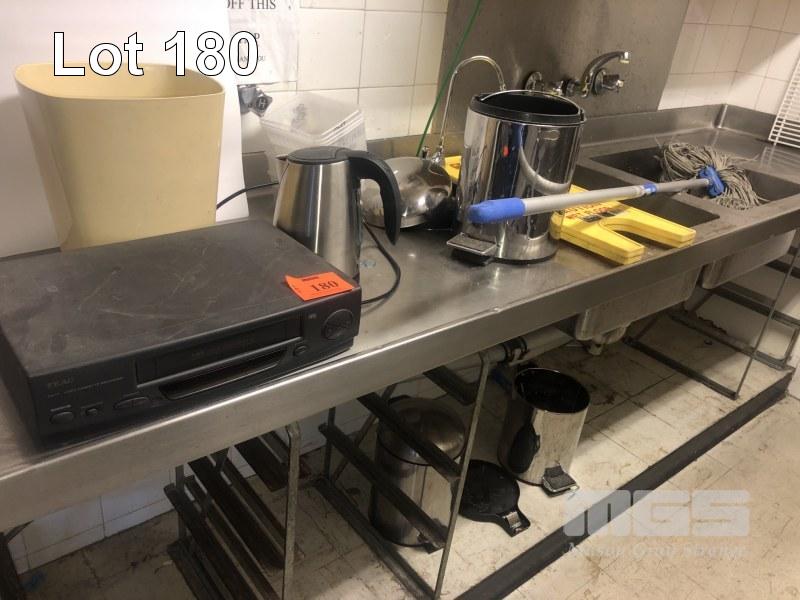 ELECTRIC KETTLE, STAINLESS STEEL WASTE BINS, DVD PLAYER, SINGLE LOCKER UNIT, WET FLOOR SIGNS, MOP, BROOMS