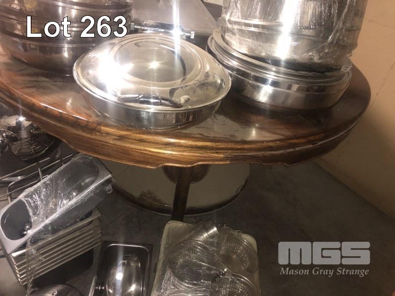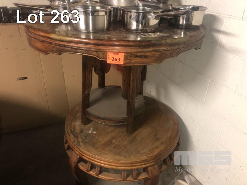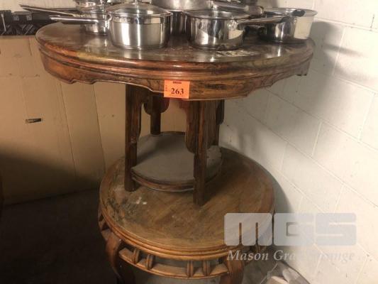 3 x TIMBER ROUND ORNATE TABLES, 1500, 1000 & 900mm DIAMETER