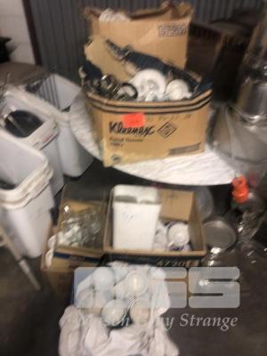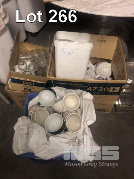 ASSORTED CHINA, POTS, CUPS PLATES, GLASSWARE & COFFEE PLUNGERS, 5 x BOXES