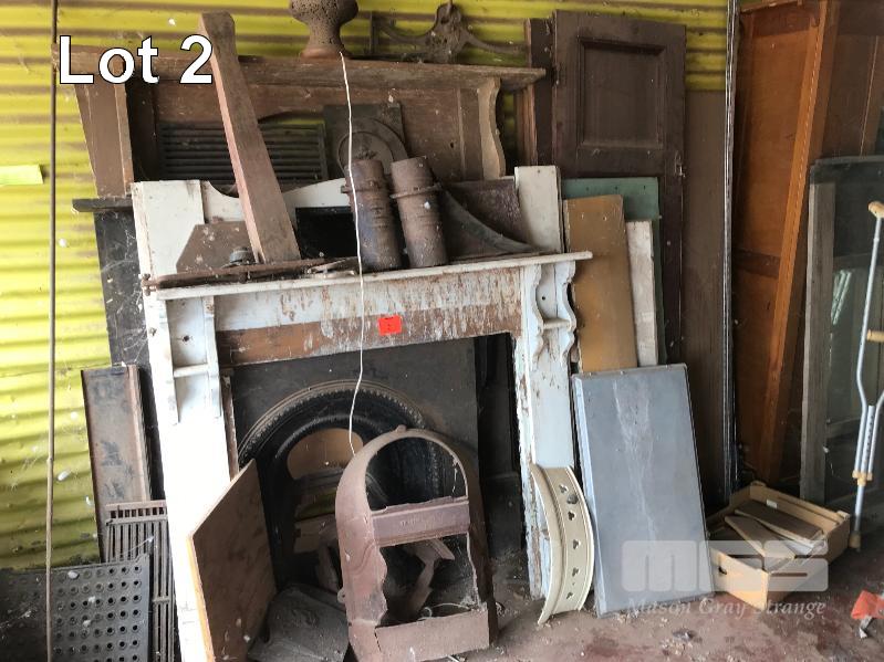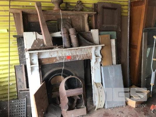 CAST FIREPLACE SURROUND, FLUE SECTIONS, SET OF BI-FOLD DOORS, PIANO HINGE ETC
