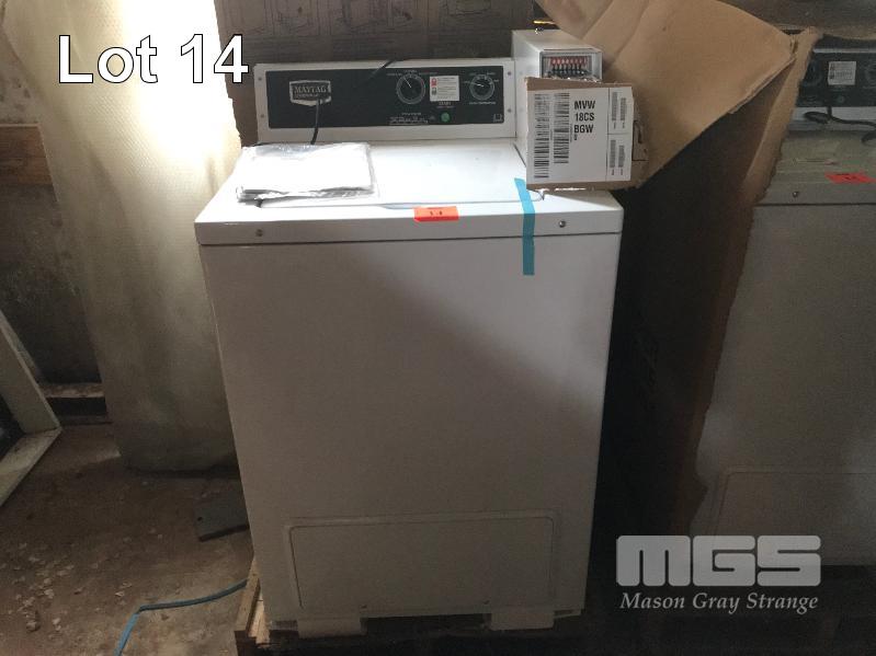 MAYTAG COMMERCIAL LAUNDRY, COIN OP, TOP LOAD WASHING MACHINE 4 x $1.00 COIN MOD: MVW18CSBGW0 S/NO: C54630001