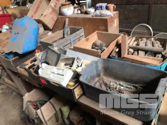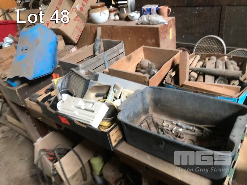 ASSORTED ELECTRICAL, FURNITURE HARDWARE, ETC, 1 x TABLE & UNDER TABLE