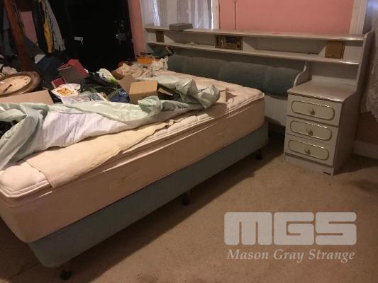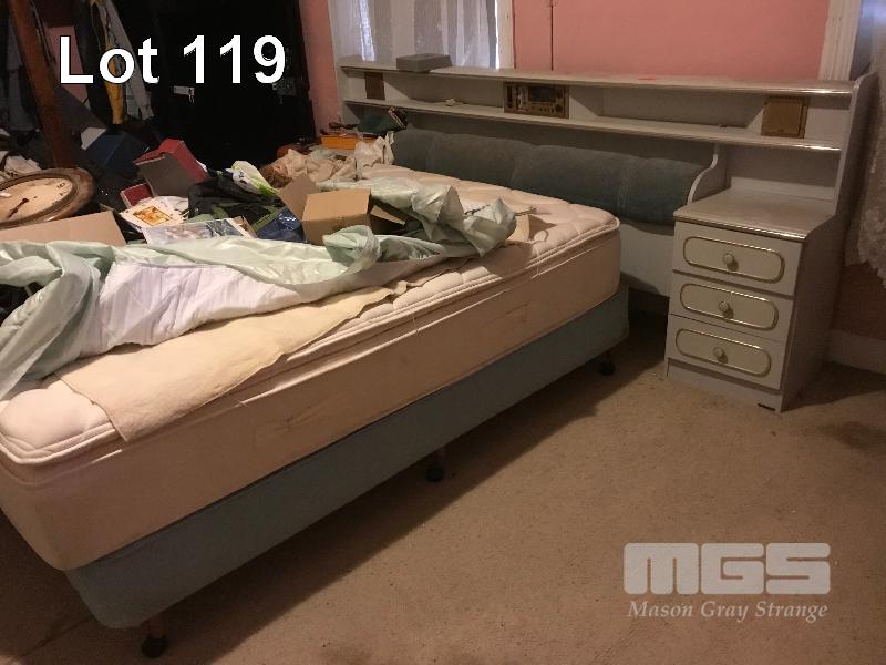 BEDROOM SUITE INC QUEEN SIZE MATTRESS WITH FITTED HEADBOARD & BUILT IN RADIO & BEDSIDES