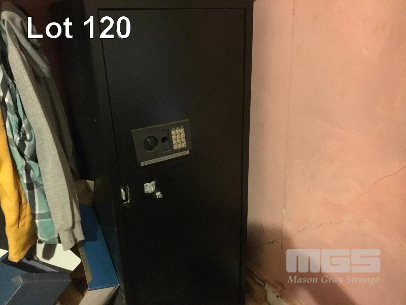 UPRIGHT GUN SAFE, ELECTRONIC DIGITAL (DISABLED) WITH RETRO FITTED LOCKING MECHANISM TO SUIT PADLOCK, INTERNAL AMMUNITION COMPARTMENT