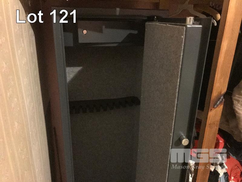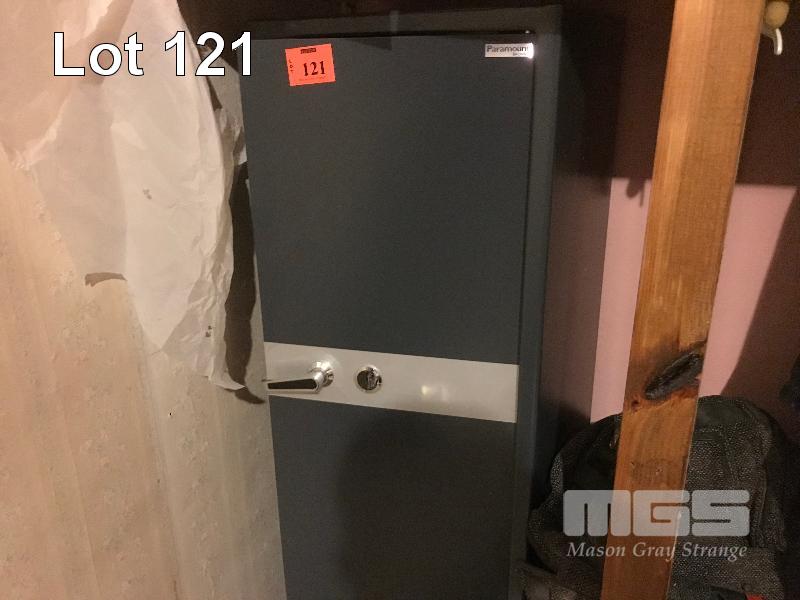 UPRIGHT GUN SAFE, PARAMOUNT BROWNS, SINGLE DOOR, KEY TYPE WITH GUN RACK INTERNALS & AMMUNITION COMPARTMENT