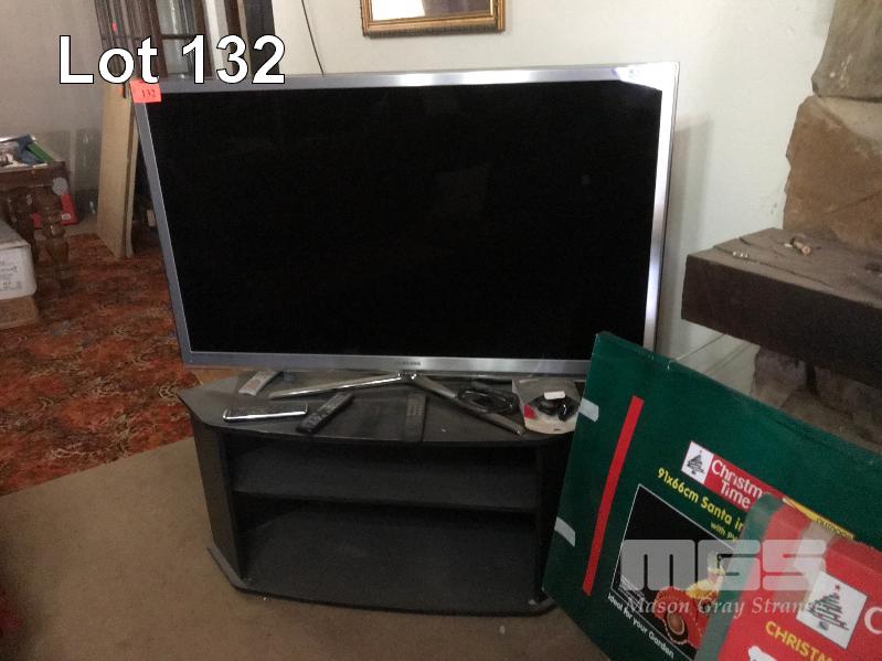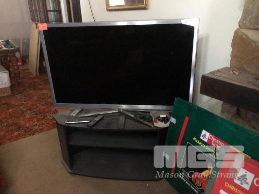 SAMSUNG 55 INCH LCD T.V WITH REMOTE & 3D GLASSES, BLACK CORNER ENTERTAINMENT UNIT