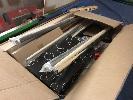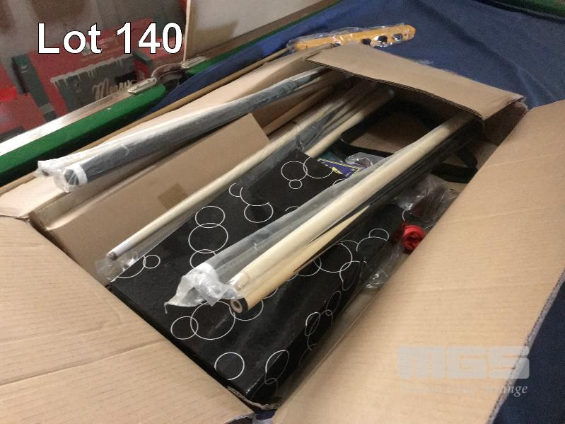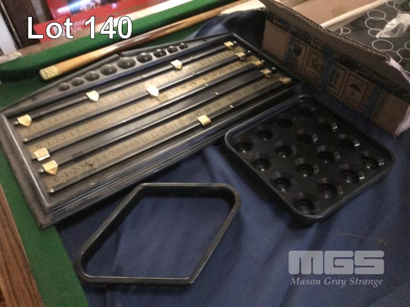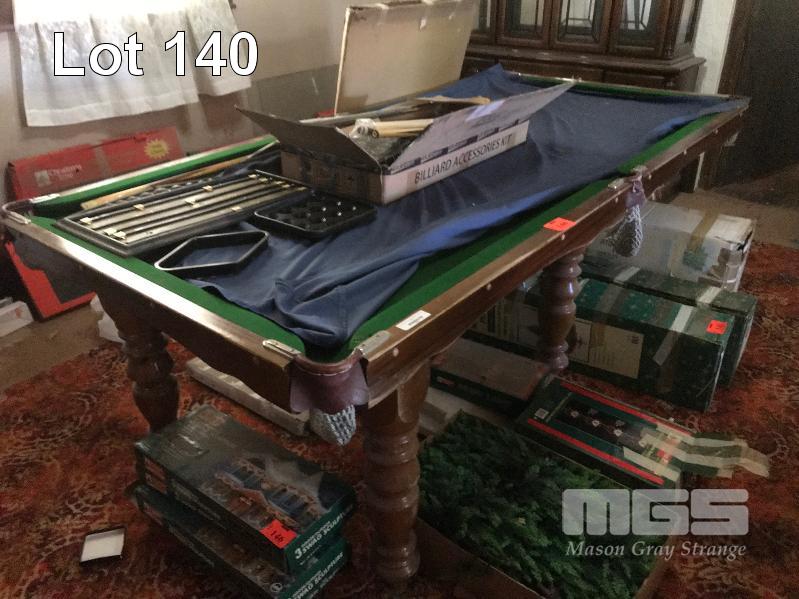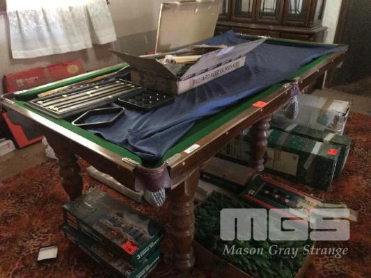POOL TABLE, 3/4 SIZE, SLATE TOPPED WITH ACCESSORIES INC BALLS, CUES, SCOREBOARD, BALL TRAY ETC