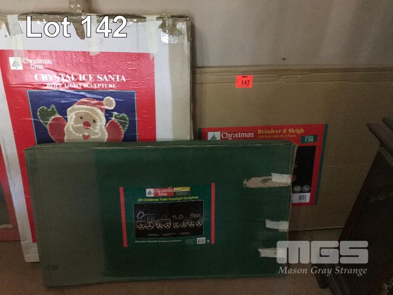 5 X ASSORTED ROPE LIGHT CHRISTMAS DECORATIONS, REINDEER & SLEIGH, CRYSTAL ICE SANTA , CHRISTMAS TRAIN ETC