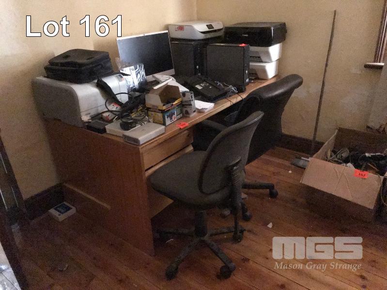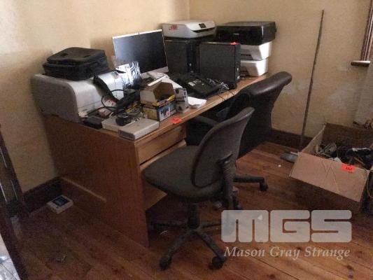OFFICE DESK, 2 x CHAIRS, BOOKCASE & FILING CABINET