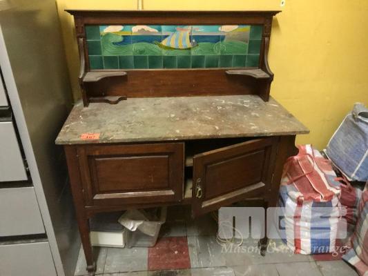 KITCHEN DRESSER, MARBLE TOP WITH TILE SPLASHBACK, 2 DOOR UNDERSTORAGE