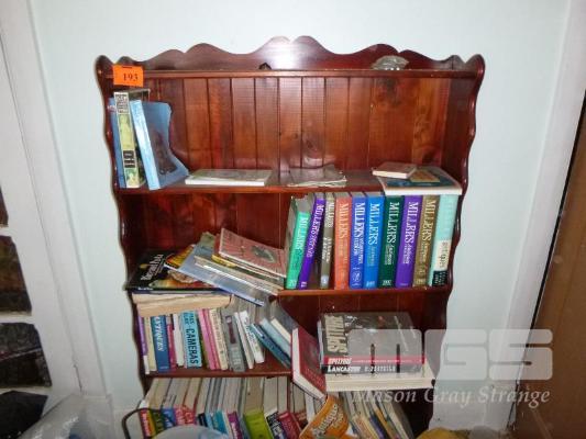 PINE BOOKCASE & CONTENTS MILLERS & CARTERS ANTIQUE REFERENCE BOOKS, ETC