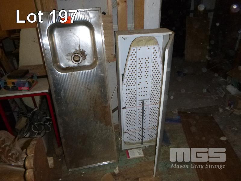 STAINLESS STEEL SINGLE BOWL SINK WITH RIGHT HAND DRAIN & WHITE LAMINATE IRONING BOARD CABINET