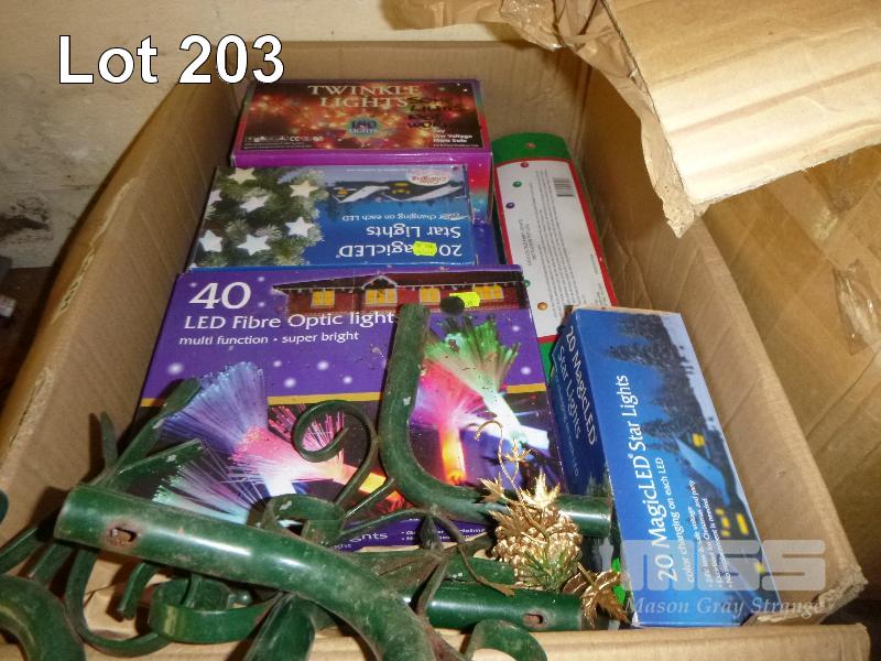 ASSORTED CHRISTMAS DECORATIONS, FIBRE OPTIC & LED LIGHTS, ETC