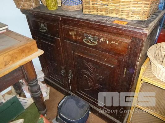 CARVED TIMBER FRONTED 2 DOOR SIDEBOARD
