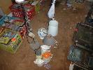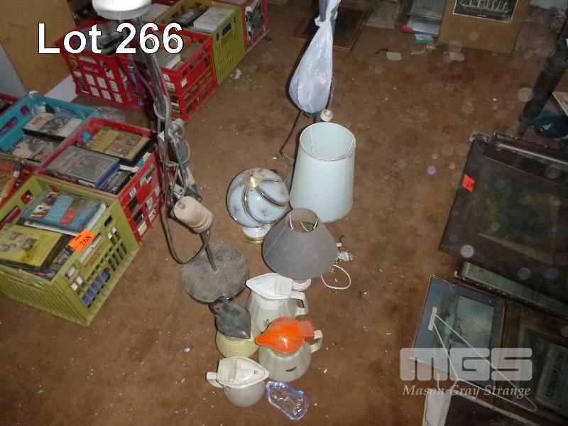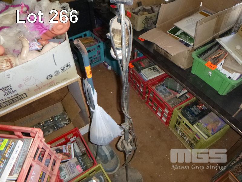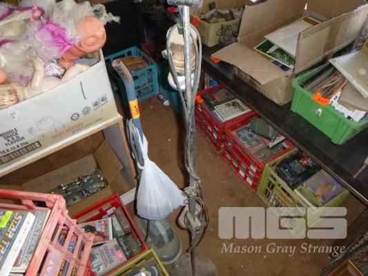 VACTRIC FLOOR SCRUBBER, PEDESTAL TWIN LAMP, TABLE LAMP & VINTAGE KETTLES
