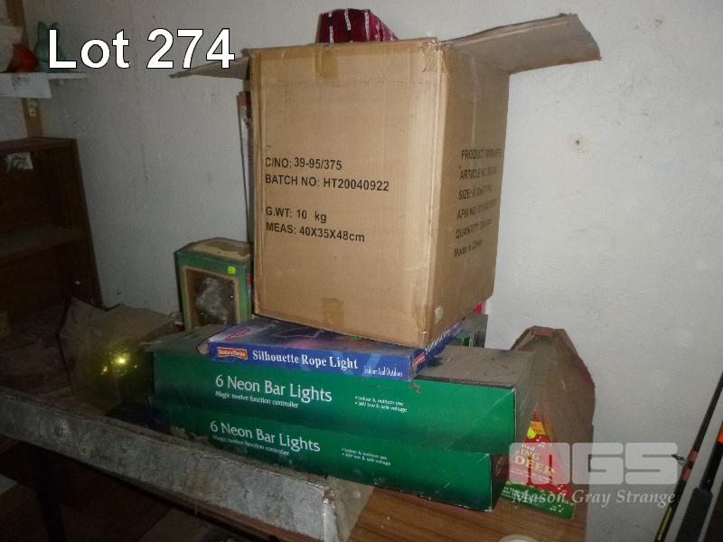ASSORTED CHRISTMAS DECORATIONS, LIGHTS, ETC