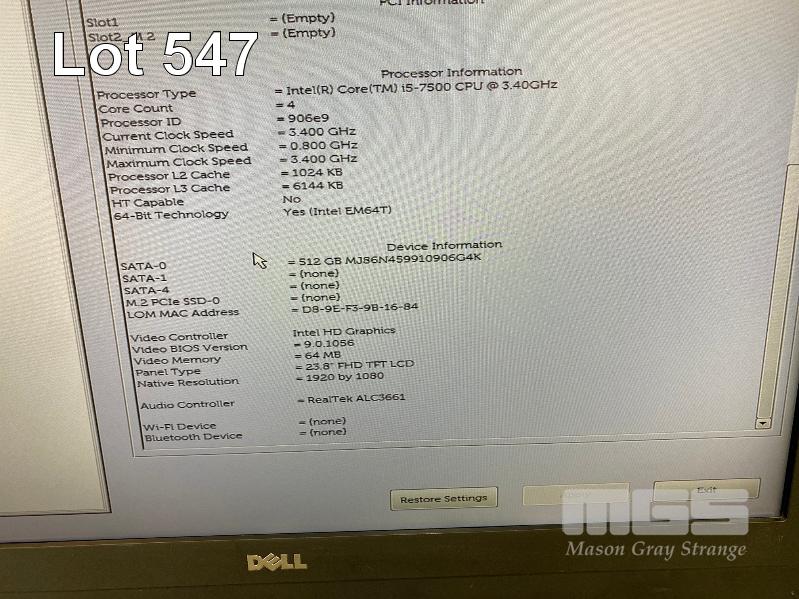 ALL-IN-ONE PC, DELL OPTIPLEX 7450, CORE i5 7500 (7TH GEN) @ 3.4GHz, 8GB DDR4 RAM, 512GB SSD, INBUILT 23.8" FHD WIDESCREEN (1920x1080), INTEL HD VIDEO, WEBCAM, 7 x USB, 1 x USB-C, WINDOWS 10 HOME INSTALLED, KEYBOARD & MOUSE S/N:5MG0LQ2