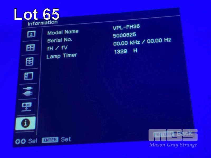 PROJECTOR, SONY VPL-FH36 WUXGA 3LCD, 5,200 LUMENS, HDMI INPUT, 1,329 HOURS SHOWING WITH REMOTE S/N:5000825