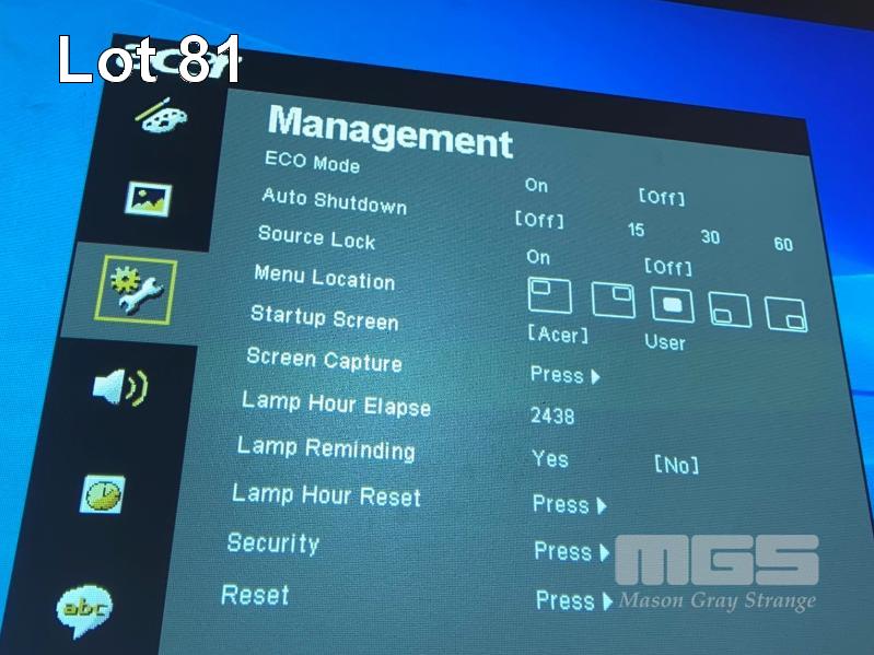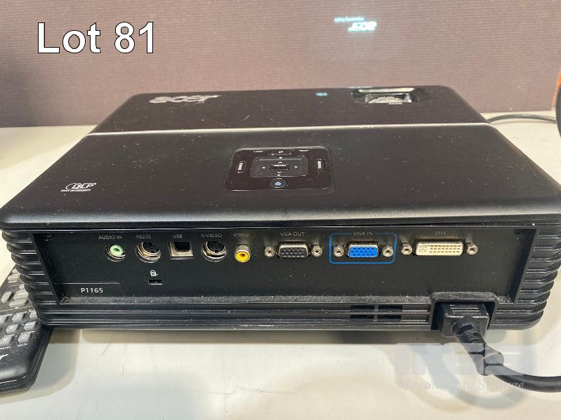 PROJECTOR, ACER P1165 DLP, 2400 LUMENS, 2,438 HOURS SHOWING WITH REMOTE