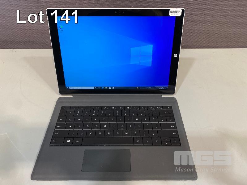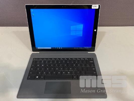 TABLET PC, MICROSOFT SURFACE PRO 3, MODEL 1631, CORE i5 4300U (4TH GEN) @ 1.9GHz, 8GB RAM, 256GB SSD, 12" TOUCHSCREEN, Wi-Fi, WINDOWS 10 PRO INSTALLED, KEYBOARD TYPE COVER & POWER SUPPLY (NOTE: SMALL DENT ON FRAME RHS) S/N:045352251353