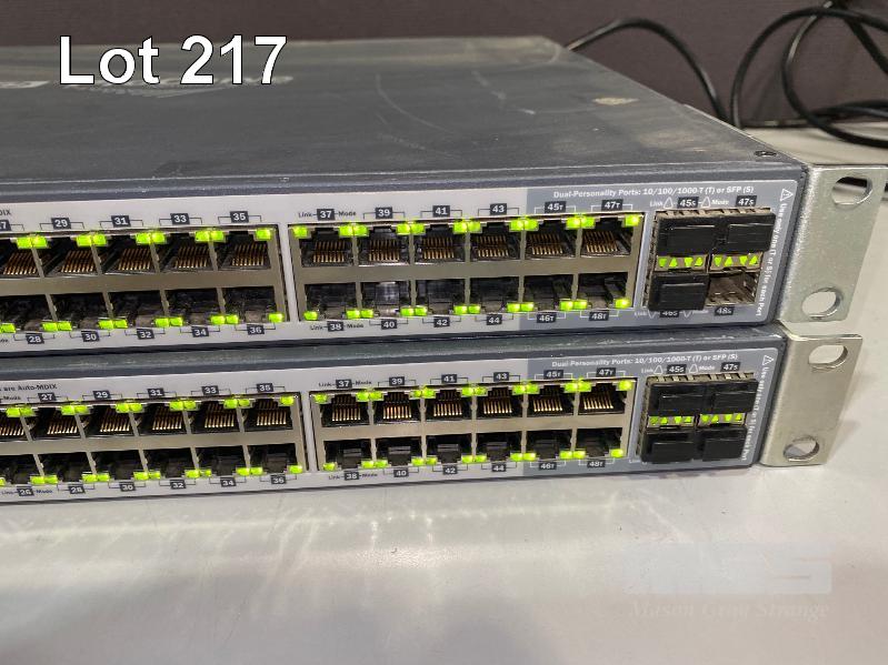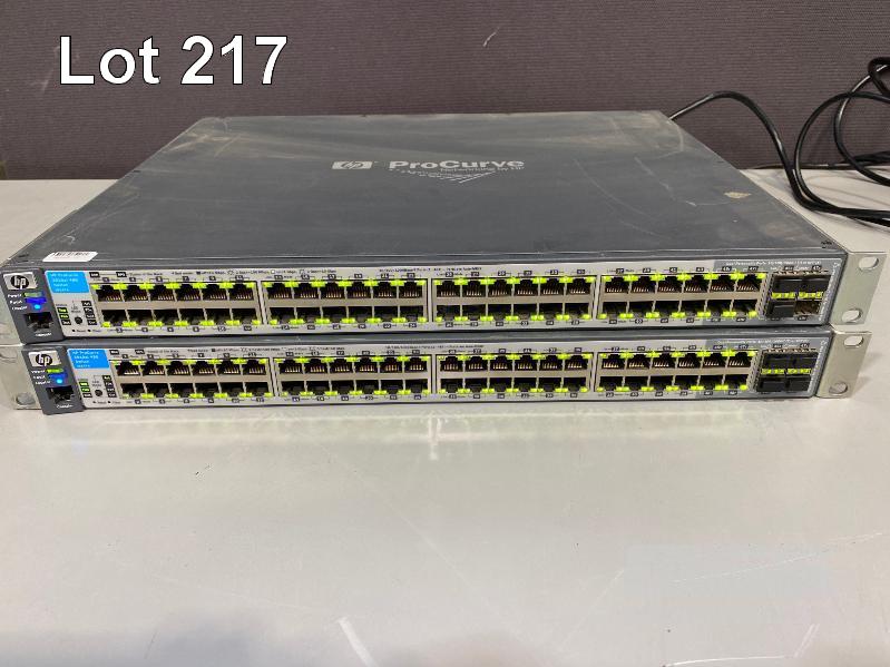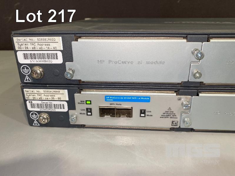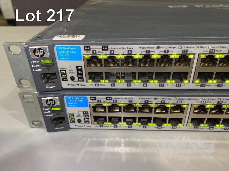 2 x HP PROCURVE 2910al-48G 48-PORT SWITCHES, J9147A (NO CABLES) WITH 1 x 10-GbE SFP+ al MODULE, J9008A S/N:SG939IR02Q, SG950IR0N0