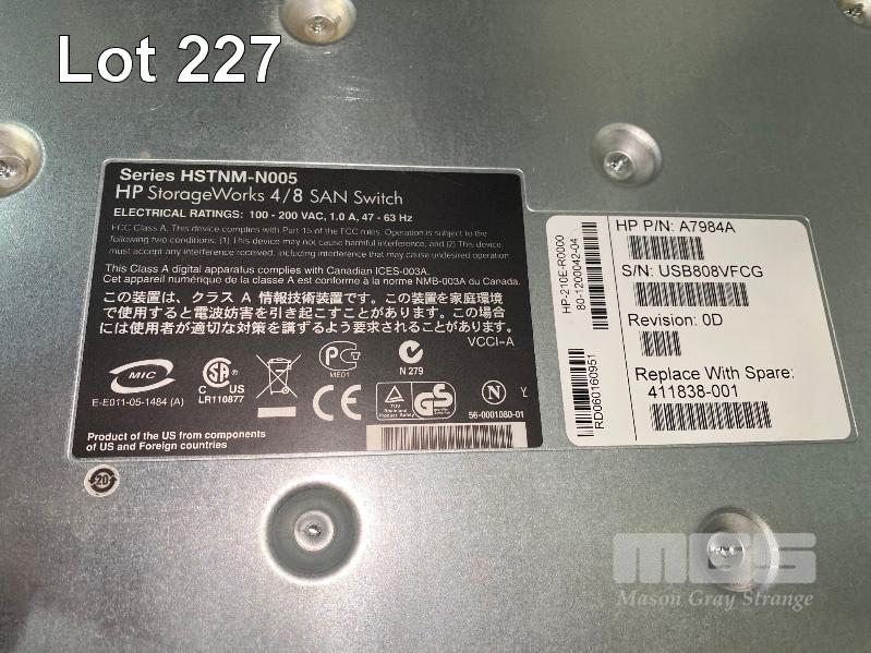 2 x HP STORAGEWORKS 4/8 SAN 16-PORT FIBRE CHANNEL SWITCHES, A7984A (NO CABLES) S/N:USB808VFCG, USB808VFDU