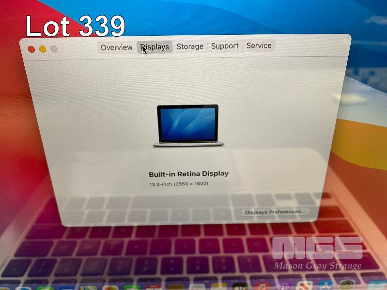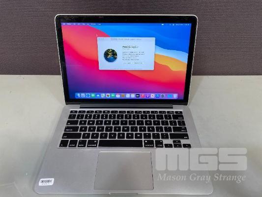 LAPTOP, APPLE MACBOOK PRO (A1502), CORE i5 4288U (4TH GEN) @ 2.6GHz, 8GB DDR3 RAM, 512GB SSD, 13.3" RETINA WIDESCREEN (2560x1600), INTEL IRIS GRAPHICS, Wi-Fi, MAC OS 11.6 INSTALLED (NO POWER SUPPLY ) (NOTE: MAJOR MARKS ON SCREEN) S/N:C02ML9GJFH01