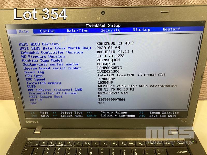 LAPTOP, LENOVO THINKPAD T460 (20FMS0QJ0H), CORE i5 6300U (6TH GEN) @ 2.4GHz, 16GB DDR3 RAM, 256GB SSD, 14" WIDESCREEN (1920x1080), INTEL HD VIDEO, Wi-Fi, BLUETOOTH, WINDOWS 10 PRO INSTALLED & POWER SUPPLY (NOTE: MARKS ON SCREEN) S/N:PC0GQKZA