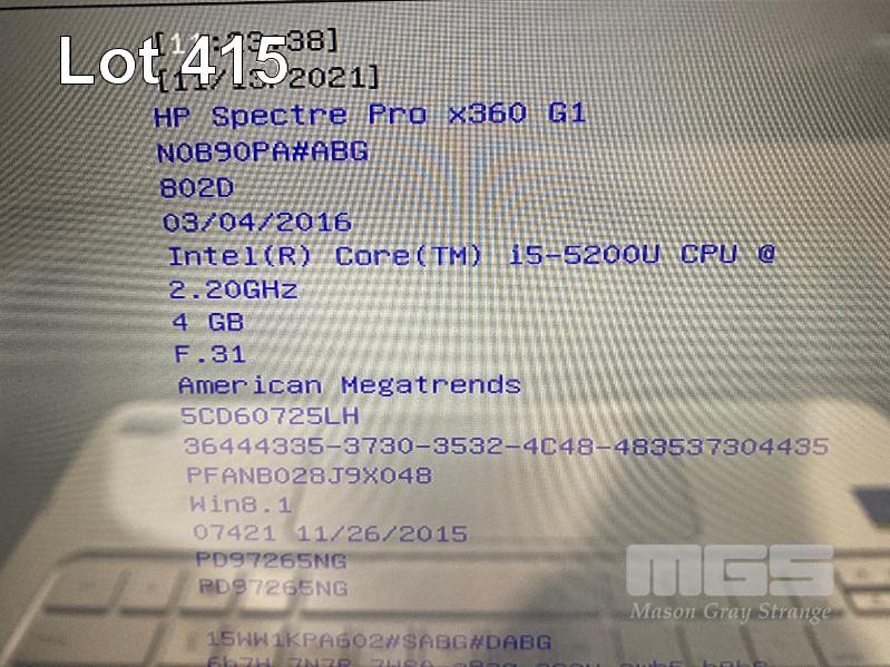LAPTOP, HP SPECTRE PRO X360 G1 (N0B90PA), CORE i5 5200U (5TH GEN) @ 2.2GHz, 4GB DDR3 RAM, 128GB M.2 SSD, 13.3" TOUCHSCREEN (1920x1080), INTEL HD VIDEO, Wi-Fi, BLUETOOTH, WINDOWS 10 PRO INSTALLED & POWER SUPPLY (NOTE: BATTERY ALERT MESSAGE, BATTERY NOT CHARGING) S/N:5CD60725LH