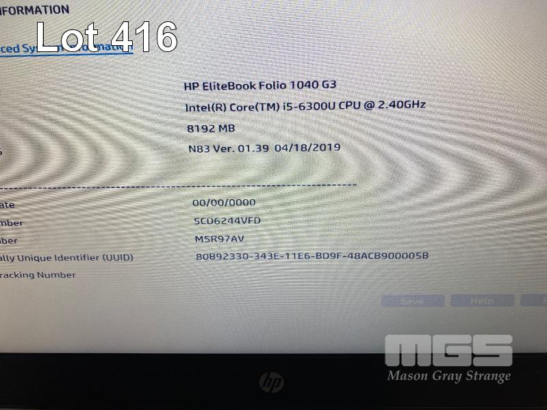 LAPTOP, HP ELITEBOOK FOLIO 1040 G3 (M5R97AV), CORE i5 6300U (6TH GEN) @ 2.4GHz, 8GB DDR4 RAM, 128GB M.2 SSD, 14" WIDESCREEN (1366x768), INTEL HD VIDEO, Wi-Fi, BLUETOOTH, WINDOWS 10 PRO INSTALLED & POWER SUPPLY S/N:5CD6244VFD