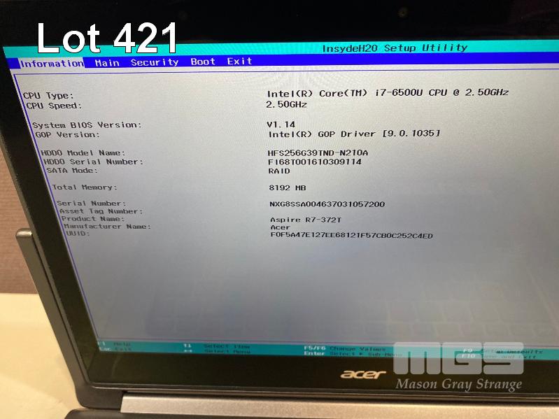 LAPTOP, ACER ASPIRE R7-372T 2-IN-1, CORE i7 6500U (6TH GEN) @ 2.5GHz, 8GB DDR3 RAM, 256GB SSD, 13.3" TOUCHSCREEN (1920x1080), INTEL HD VIDEO, 1 x USB-C, Wi-Fi, BLUETOOTH, WINDOWS 10 HOME INSTALLED (NO POWER SUPPLY) (NOTE: MINOR MARKS ON SCREEN) S/N:63701254972