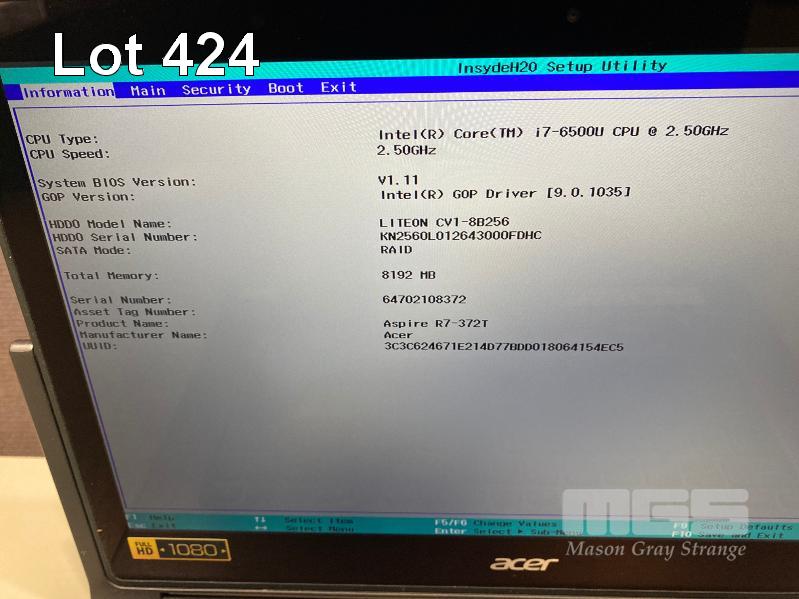 LAPTOP, ACER ASPIRE R7-372T 2-IN-1, CORE i7 6500U (6TH GEN) @ 2.5GHz, 8GB DDR3 RAM, 256GB SSD, 13.3" TOUCHSCREEN (1920x1080), INTEL HD VIDEO, 1 x USB-C, Wi-Fi, BLUETOOTH, WINDOWS 10 HOME INSTALLED (NO POWER SUPPLY) (NOTE: MINOR MARKS ON SCREEN) S/N:64702108372