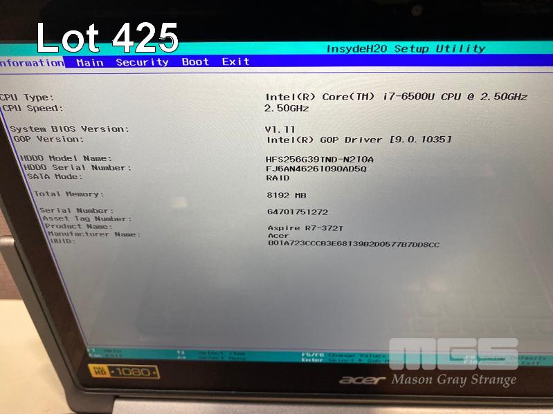 LAPTOP, ACER ASPIRE R7-372T 2-IN-1, CORE i7 6500U (6TH GEN) @ 2.5GHz, 8GB DDR3 RAM, 256GB SSD, 13.3" TOUCHSCREEN (1920x1080), INTEL HD VIDEO, 1 x USB-C, Wi-Fi, BLUETOOTH, WINDOWS 10 HOME INSTALLED (NO POWER SUPPLY) (NOTE: MINOR MARKS ON SCREEN) S/N:64701751272