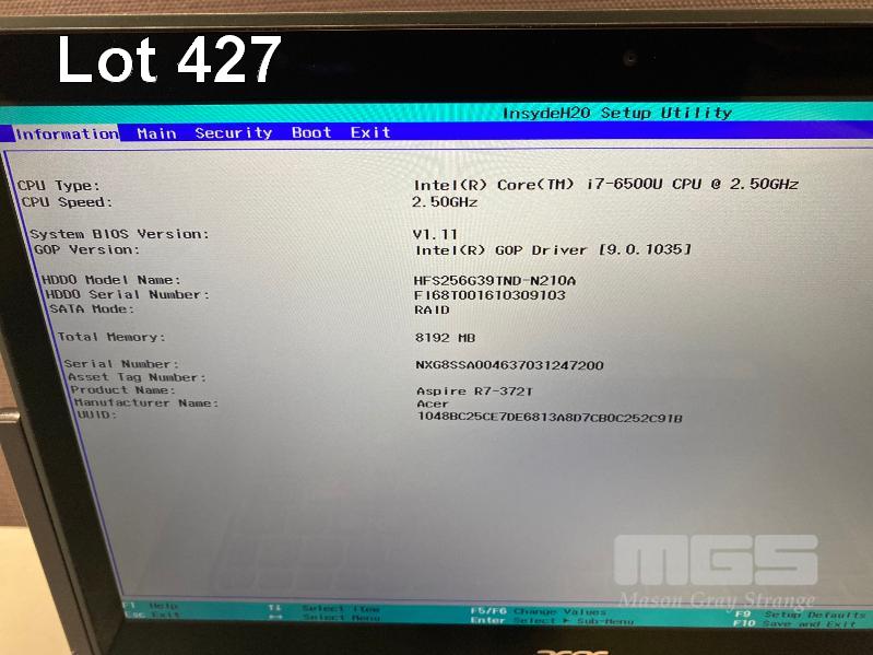 LAPTOP, ACER ASPIRE R7-372T 2-IN-1, CORE i7 6500U (6TH GEN) @ 2.5GHz, 8GB DDR3 RAM, 256GB SSD, 13.3" TOUCHSCREEN (1920x1080), INTEL HD VIDEO, 1 x USB-C, Wi-Fi, BLUETOOTH, WINDOWS 10 HOME INSTALLED (NO POWER SUPPLY) (NOTE: MINOR MARKS ON SCREEN) S/N:63701258072