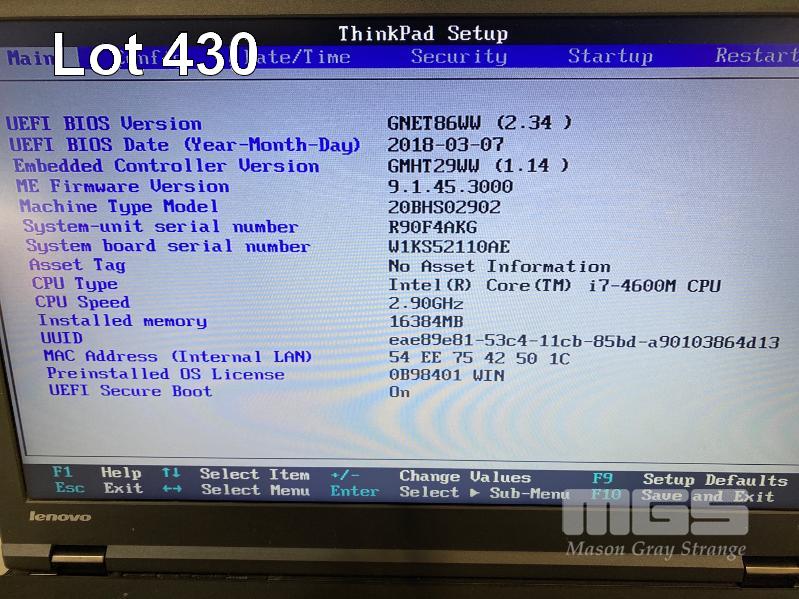 LAPTOP, LENOVO THINKPAD W540 (20BHS02902), CORE i7 4600M (4TH GEN) @ 2.9GHz, 16GB DDR3 RAM, 256GB SSD, DVD-RW, 15.6" WIDESCREEN (1920x1080), INTEL HD VIDEO, 2GB NVIDIA QUADRO K1100M VIDEO, Wi-Fi, BLUETOOTH, WINDOWS 10 PRO INSTALLED & POWER SUPPLY S/N:R90F4AKG