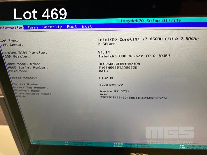 LAPTOP, ACER ASPIRE R7-372T 2-IN-1, CORE i7 6500U (6TH GEN) @ 2.5GHz, 8GB DDR3 RAM, 256GB SSD, 13.3" TOUCHSCREEN (1920x1080), INTEL HD VIDEO, 1 x USB-C, Wi-Fi, BLUETOOTH, WINDOWS 10 HOME INSTALLED (NO POWER SUPPLY) (NOTE: MINOR MARKS ON SCREEN) S/N:63701256872