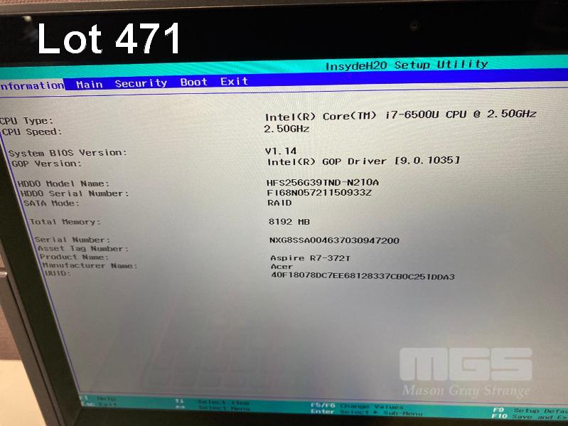 LAPTOP, ACER ASPIRE R7-372T 2-IN-1, CORE i7 6500U (6TH GEN) @ 2.5GHz, 8GB DDR3 RAM, 256GB SSD, 13.3" TOUCHSCREEN (1920x1080), INTEL HD VIDEO, 1 x USB-C, Wi-Fi, BLUETOOTH, WINDOWS 10 HOME INSTALLED (NO POWER SUPPLY) (NOTE: MINOR MARKS ON SCREEN) S/N:63701243672