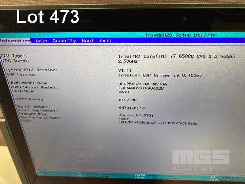 LAPTOP, ACER ASPIRE R7-372T 2-IN-1, CORE i7 6500U (6TH GEN) @ 2.5GHz, 8GB DDR3 RAM, 256GB SSD, 13.3" TOUCHSCREEN (1920x1080), INTEL HD VIDEO, 1 x USB-C, Wi-Fi, BLUETOOTH, WINDOWS 10 HOME INSTALLED (NO POWER SUPPLY) (NOTE: MINOR MARKS ON SCREEN) S/N:64701751772