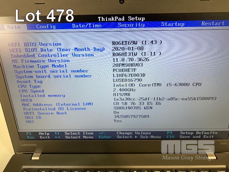 LAPTOP, LENOVO THINKPAD T460 (20FMS0KV03), CORE i5 6300U (6TH GEN) @ 2.4GHz, 8GB DDR3 RAM, 500GB SATA HDD, 14" WIDESCREEN (1366x768), INTEL HD VIDEO, Wi-Fi, BLUETOOTH, WINDOWS 10 PRO INSTALLED & POWER SUPPLY S/N:PC0EHE7F